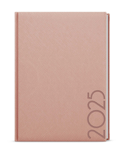 Neobyčejný denní diář s lesklým povrchem ze strukturovaného materiálu v pudrové barvě je vyráběný ve formátu A5 a má velký prostor pro poznámky a plánování.