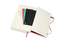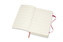 Velký červený denní diář datovaný od července 2020 do konce roku 2021. Na každý den stránka pro poznámky a schůzky. Diář má měkkou, ve hřbetu šitou vazbu v kartonových deskách. Obepíná ho pružná páska proti samovolnému otevírání. Obsahuje praktickou vnitřní kapsu na vizitky a dokumenty, textilní záložku, 295 barevných samolepek a leták s historií Moleskine. Papír s gramáží 70 g/m2 neobsahuje kyseliny.