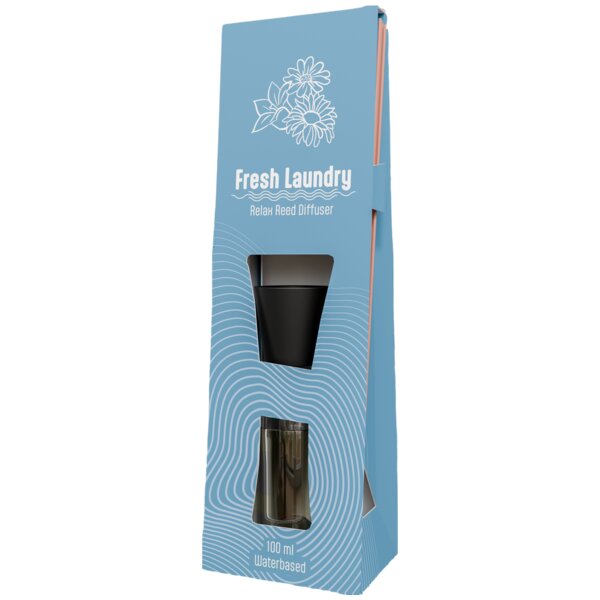 Relax Fresh Laundry je dekorativní osvěžovač vzduchu v podobě aroma difuzéru s ratanovými tyčinkami a exkluzivní skleničkou. Nabízí intenzivní svěží vůni v silném koncentrátu, která decentně provoní interiér a vytvoří příjemnou atmosféru v domácnosti, koupelně, WC i kanceláři.