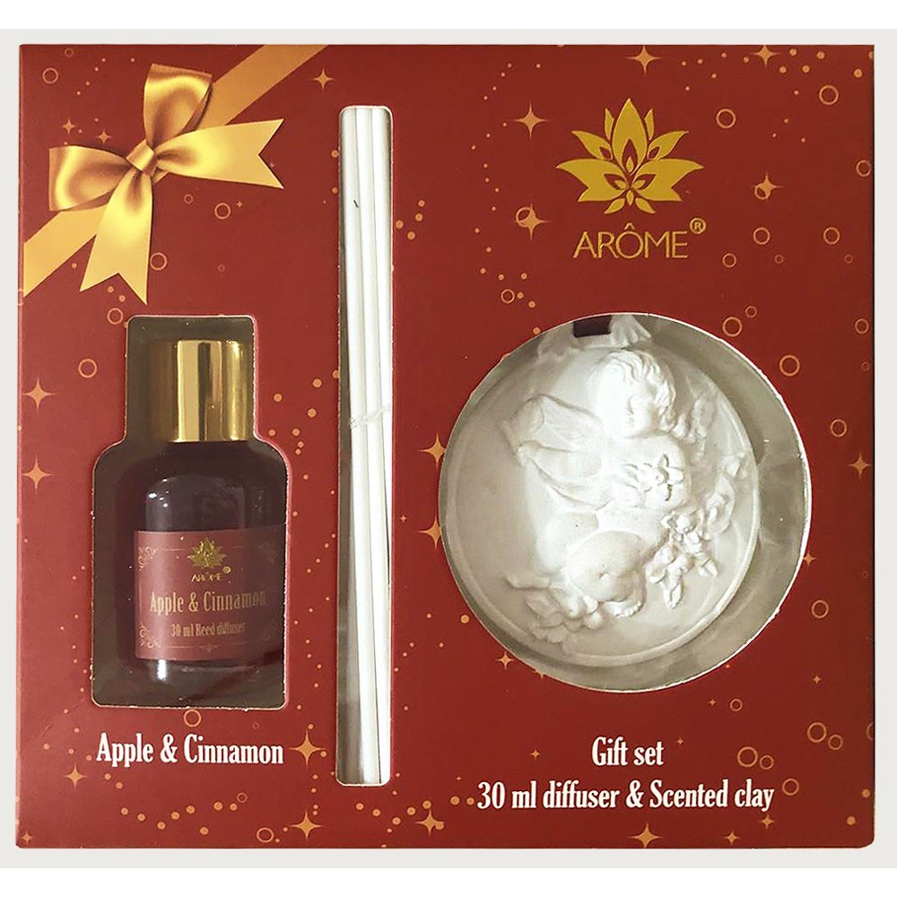 ARÔME Dárkový set difuzéru 30 ml a vonného jílu, Apple and Cinnamom