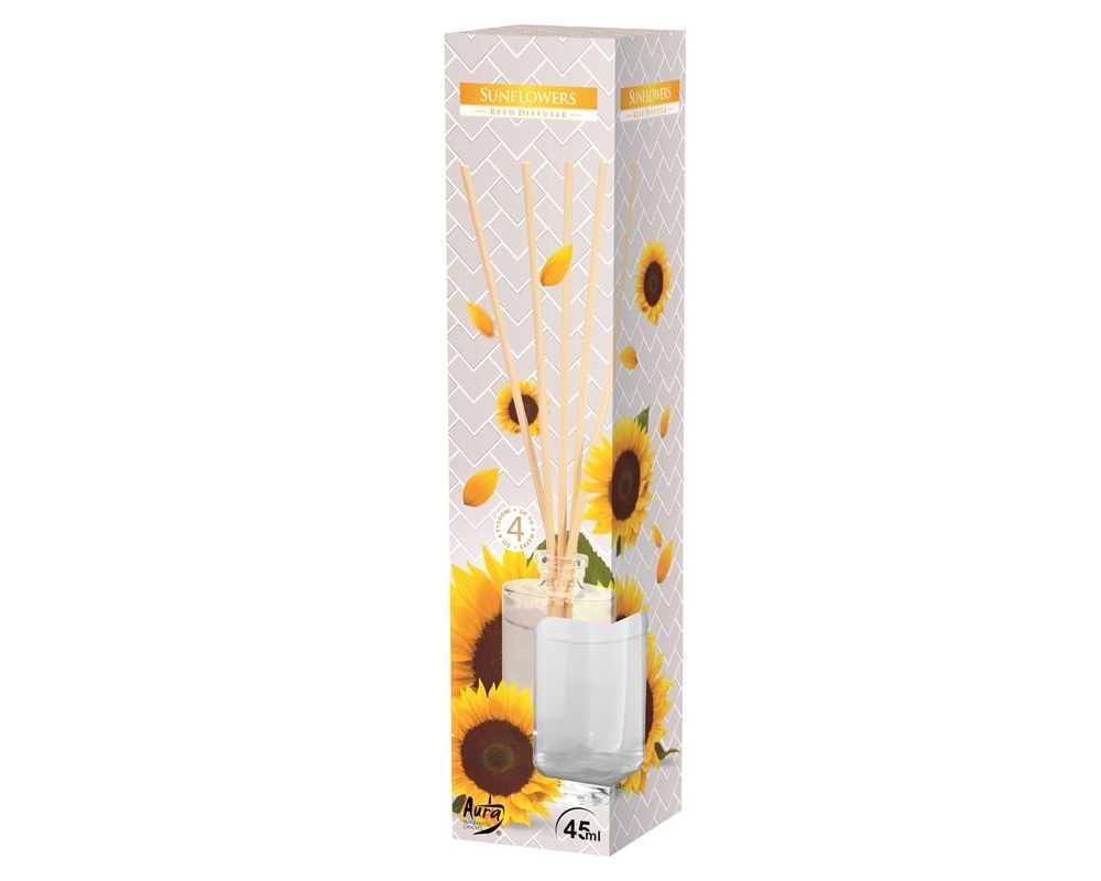 Difuzér Slunečnice 45 ml Dodejte vašemu domovu nebo kanceláři punc výjimečnosti s vonnými tyčinkami. Malá skleněná lahvička s pěti rákosovými tyčinkami a vonnou esencí provoní vnitřní prostor květinovou vůní až na 4 týdny. Intenzitu vůně si můžete jednoduše přizpůsobovat pomocí počtu tyčinek umístěných v difuzéru. Ten díky svému minimalistickému a univerzálnímu designu dokonale zapadne do jakéhokoliv prostoru. Nechte se unášet květinovou vůní, kterou vám přináší vonné tyčinky.