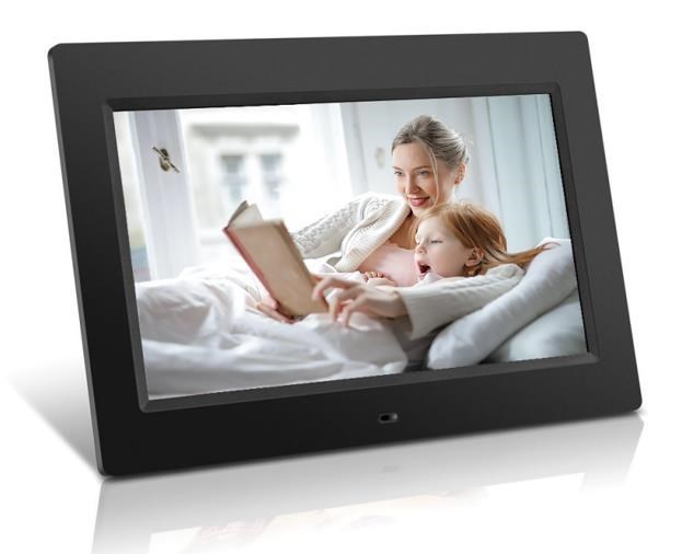 Digitální fotorámeček s úhlopříčkou 10" IPS, vysoké rozlišení 1024x600px, 16:9, prohlížení obrázků ve formátu JPEG, poslech hudby MP3/WMA a přehrávání videa Full HD AVI, MPEG1/2/4 (DivX 4.0/5.0, XviD) M-JPEG, multislot SDHC/MS a USB2 flash, HDMI in, Audio out, Auto Start/ON/OFF, funkce: SlideShow (prezentace), náhledy, zoom a otáčení obrázků, budík, hodiny, kalendář. Rozměr: 273x186x23 mm, hmotnost 440 g. Možnost uchycení na zeď (VESA 50x75mm) nebo našrobování stojánku, Kensington ochrana proti krádeži. Součástí dodávky síťový zdroj AC/DC 12V/2A, dálkové ovládání.