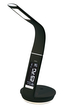 Digitální LED stolní lampa v designu umělé kůže s přehledným displejem a nabíječkou na smartphone s Qi standardem.