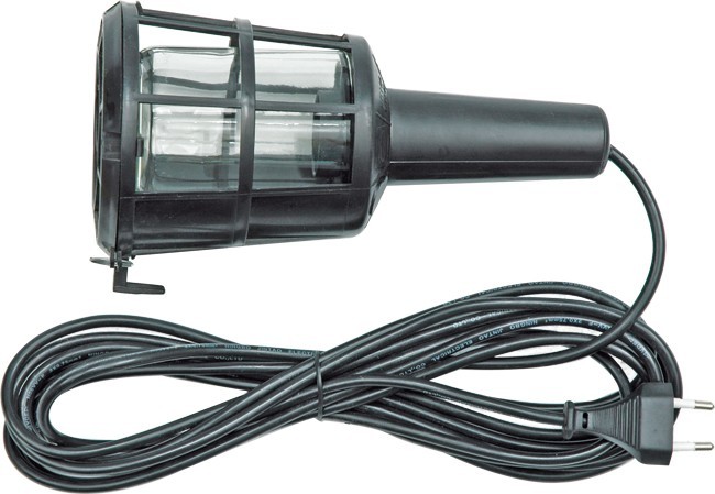 Lampa je vyrobena z odolného plastu, černé barvy. Na štítu je úchytka k potřebnému zavěšení, lampu tak můžete zavěsit, kdekoliv je potřeba.