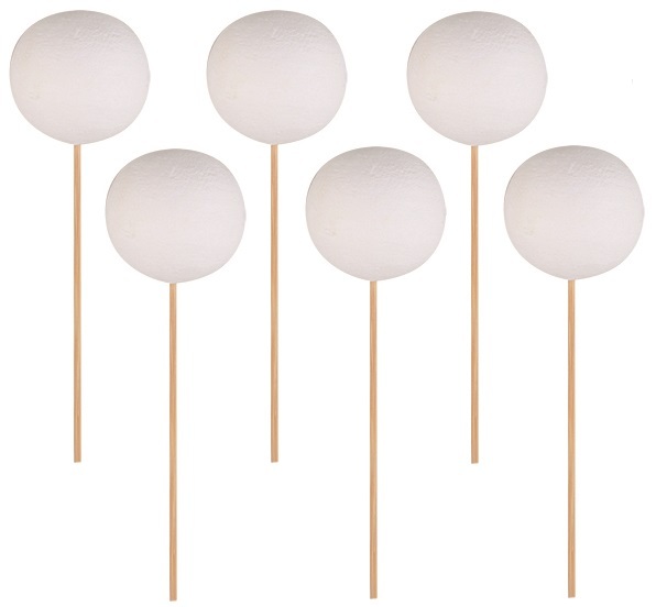 Tyto lehké koule jsou pevně připevněné ke špejlím, takže je můžete jednoduše zapíchnout do květináče, aranžmá či jiných dekorací. K jejich dozdobení můžete využít lepidla, fixy nebo barvy, pokud nejsou na vodní bázi.