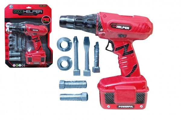 Chceš pomáhat tatínkovi při opravách doma a chybí ti ve tvé výbavě vrtačka? Nevadí! S tímto setem ti půjde vše od ruky a třeba dostaneš od maminky sladkou odměnu za odvedenou práci! Aku vrtačka se po zmáčknutí tlačítka točí a má vyměnitelné vruty. Vydává zvuky vrtání. Obsah balení: vrtačka, vrtáky, šrouby, matice. Velikost 18 cm. Kromě vrtačky balení obsahuje 3 násady, 2x šroub, 2x matice. Rozměry balení 22 x 32 x 6 cm. Vhodné pro děti od 3 let.