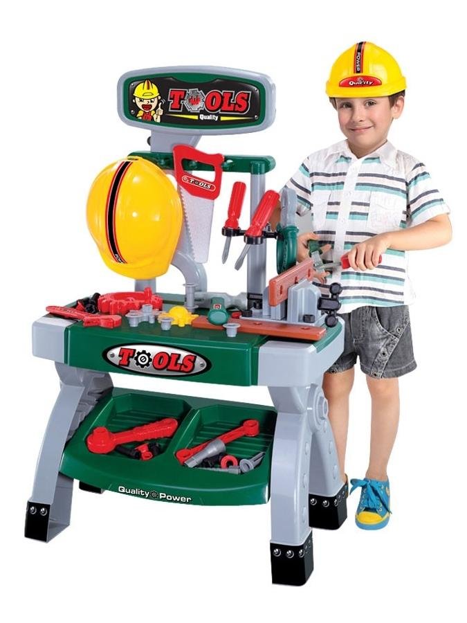 Dětská dílna s nářadím, je skvělou edukační hračkou pro malé kutily. Učí dítě rozlišovat tvary a barvy, každé nářadí pasuje k určitému tvaru. Hračka pomáhá zlepšit manuální zručnost a obratnost, rozvíjí představivost a koncentraci dítěte. Dílna je vyrobena z kvalitního plastového materiálu. Balení obsahuje také šrouby, hřebíky, matice a ozubená kolečka. Hračka je vhodná pro děti od 3 let.