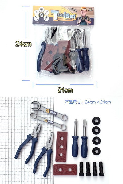 Nářadí set. Obsahuje 2 kombinačky, 2 klíče, 2 šroubováky, 4 šrouby, 4 matice, 2 dřívka. číst celé