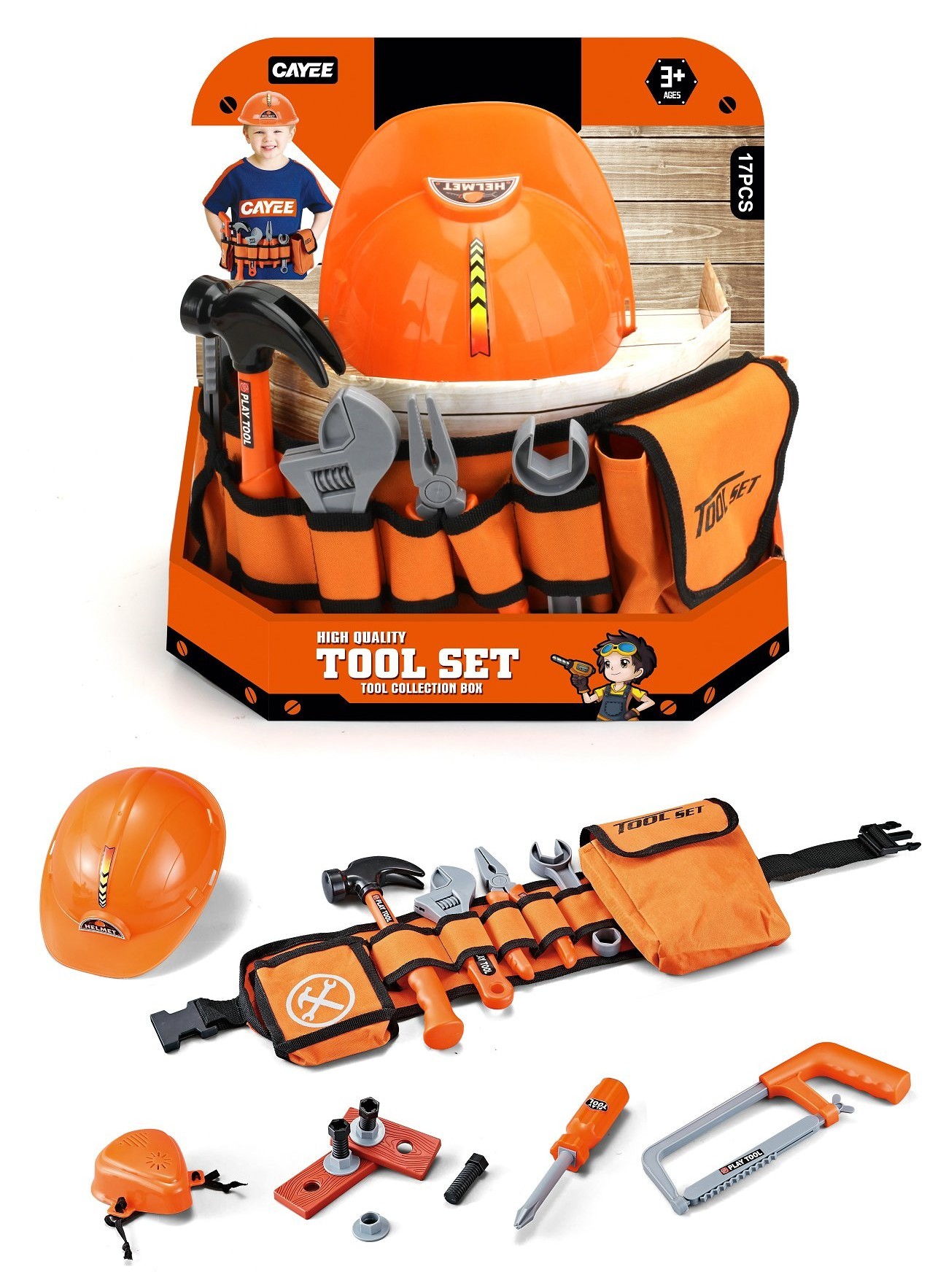 Nářadí s textilním opaskem. Obsahuje textilní opasek, přilbu, roušku, pilku, kladívko, kombinačky, hasák, šroubovák, klíč, 2 dřívka, 3 šrouby, 3 matice. číst celé