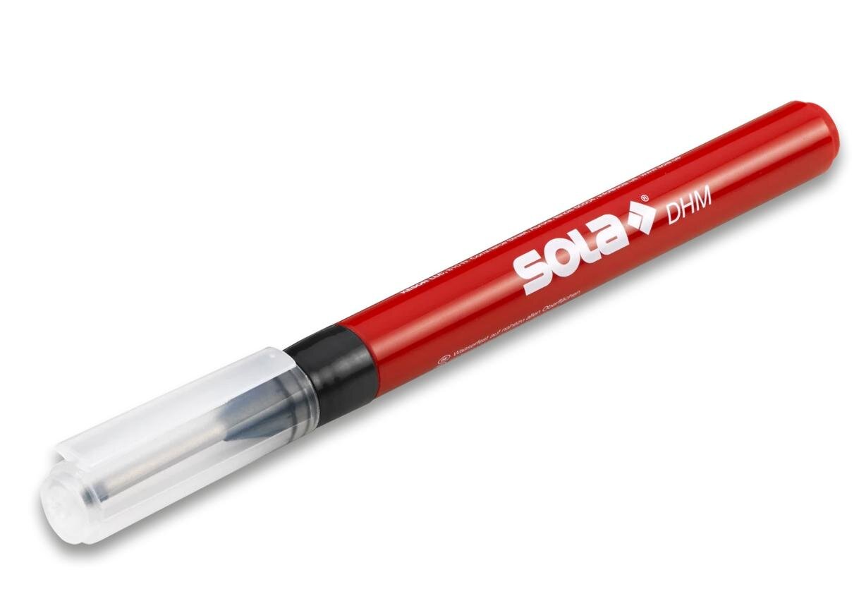 SOLA - DHM - značkovač do hlubokých otvorůVlastnostiVodotěsná a rychle zasychající náplň spolehlivě píše na hladkých a suchých materiálech, jako je sklo, kov, kámen a plast, aniž by docházelo k rozmazáníSnadné vyznačování vrtaných otvorů a značkování na obtížně přístupných místech díky tenké špičce z ušlechtilé oceliPrecizní značkování, kreslení a psaní díky jemné šířce čárySvětlostálý a rychleschnoucíŽádné obtěžující pády značkovače během práce díky upevňovací sponě Technická data:Provozní teplota -10 °C až +45 °CSkladovací teplota -20 °C až +60 °CMateriál Vysoce kvalitní plastBarva černáZnačkovač vrtaných otvorů DHM je vybaven tenkou špičkou z ušlechtilé oceli o délce 25 mm. Kulatá špička umožňuje naprosto přesná trvalá značení. Ideální pro vyznačování vrtaných otvorů nebo značkování v obtížně přístupných místech na suchých površích. Náplň je vodotěsná, rychle zasychá a spolehlivě drží na různých materiálech, jako je sklo, kov, kámen nebo také plast, aniž by docházelo k rozmazání. Díky jemné tloušťce čáry se značkovač vrtaných otvorů DHM také výborně hodí ke kreslení nebo psaní.