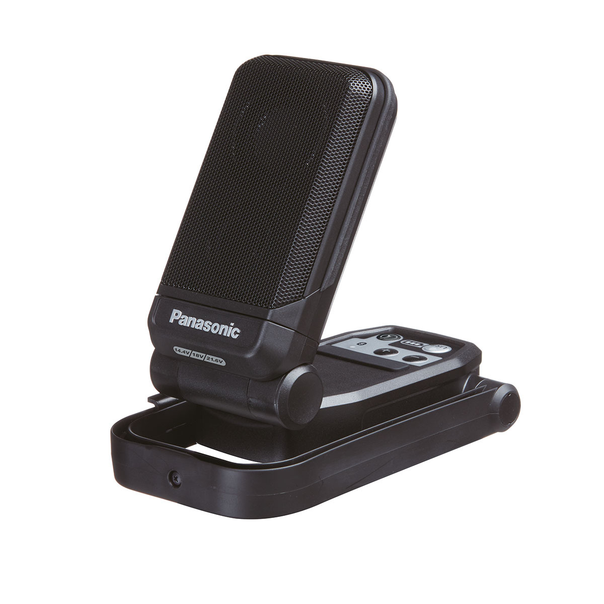 Profesjonalne radio budowlane japońskiej firmy Panasonic z funkcją Bluetooth®, portem USB, oświetleniem i klatką ochronną. Umili każdą pracę dzięki pełnowymiarowym głośnikom (2x ø 89mm, 8Ω), 12 programowanym stacjom FM/AM i zaprogramowanym 5 ustawieniom equalizera: FLAT/HEAVY/SOFT/CLEAR/VOCAL. Radio jest zasilane ze wszystkich typów baterii Li-on Panasonic 14,4 i 18,0 V lub przez dołączony zasilacz z sieci ~230V. port USB umożliwia ładowanie urządzeń typu: smartfon, tablet czy nawigacja samochodowa. Urządzenie ma wbudowaną funkcję budzika oraz programowany tryb wyłączenia po zakończeniu pracy. Na baterii o pojemności 4,2 Ah może pracować ok. 24 godzin.