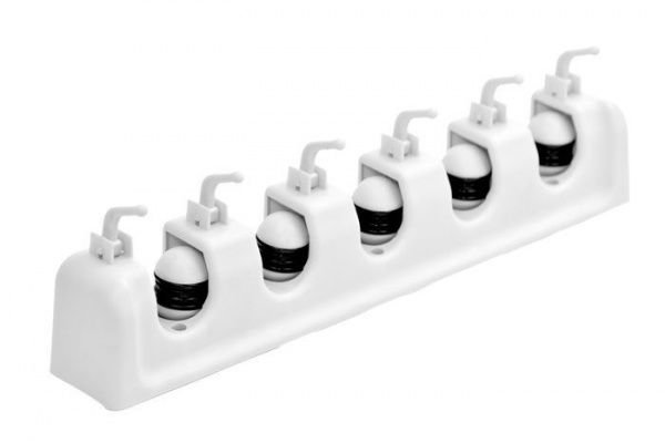 Plastový držák úklidových pomůcek - zajistí pořádek ve vaší úklidové komoře. Věšák úklidových pomůcek nabízí 5 pozic pro uchycení mopu, smetáku, teleskopické tyče, a dalších 6 háčků, celkem tedy 11 pozic. Věšák - držák nářadí je opatřen pogumovanými kolečky, které zajišťují, že nářadí je drženo vlastní váhou. Pro násady o průměru od 20 mm do 30 mm. Cena je za 1 ks. Balení běžně obsahuje 40 ks.