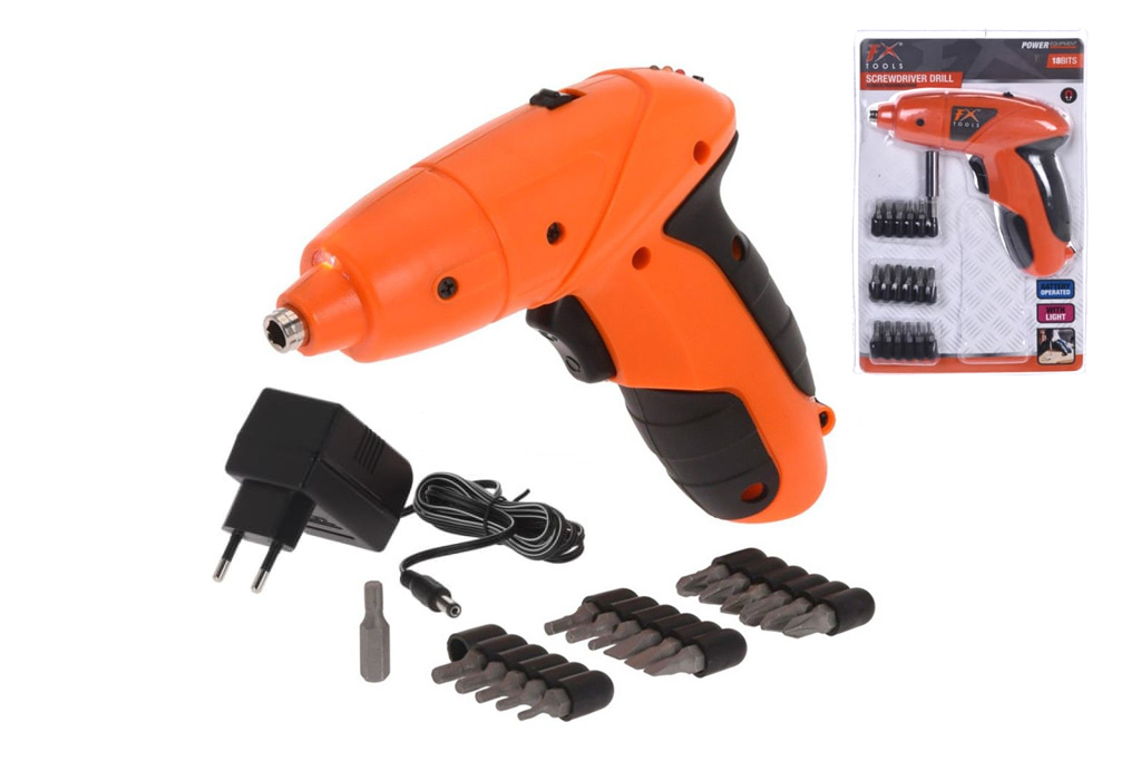 Tato aku vrtačka / aku šroubovák a sada šroubováků od značky FX TOOLS obsahuje celkem 18 kusů, které jsou ideální pro různé pracovní úkoly. Sada je dodávána v display boxu s indikátorem stavu baterie a je vybavena 1 ni-mh baterií (600mAh).
