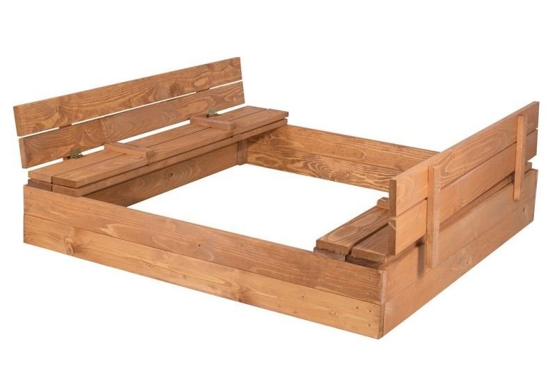 Vysoce kvalitní pískoviště Vyrobeno z odolného měkkého dřeva broušené dřevo Plně ekologická impregnace proti vodě Extrémně silná prkna 18-20 mm Uzávěr pískoviště pro ochranu písku po hře Leštěný výrobek