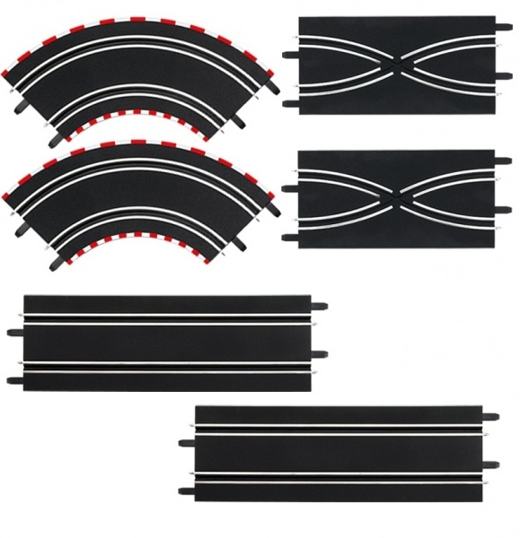 Tato malá rozšiřující sada obsahuje přesně to, co potřebujete pro zatraktivnění a oživení vaší autodráhy. Najdete zde dva rovné díly o délce 342 mm, které prodlouží trať, dva křížové prvky pro zajímavé překřížení tratí a dva 90° zatáčky pro dynamické změny směru jízdy. Díky těmto komponentům můžete vytvořit nové zajímavé varianty pro závodění a zvýšit tak adrenalinové zážitky při hraní.