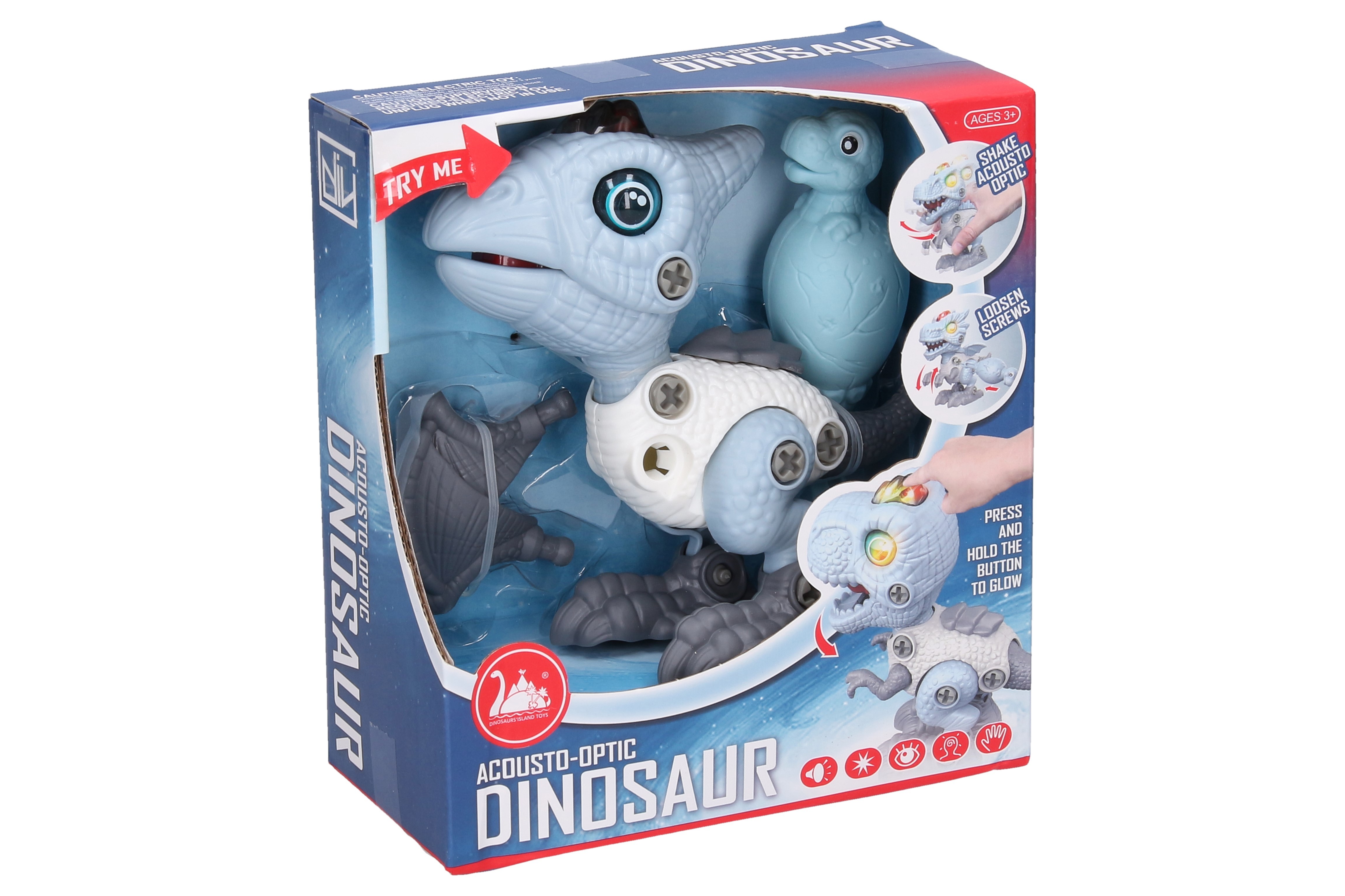Dino šroubovací s efekty pterosaurus. Rozměry 13,5x10,5x13,5 cm. Dinosaurus po zmáčknutí hřebínku na hlavě otevírá tlamu a koulí očima, při přidržení svítí. Vydává zvuky. 2xAG13 baterie jsou součástí balení. Balení obsahuje dinosaura, křídla pro dinosaura a šroubovák.