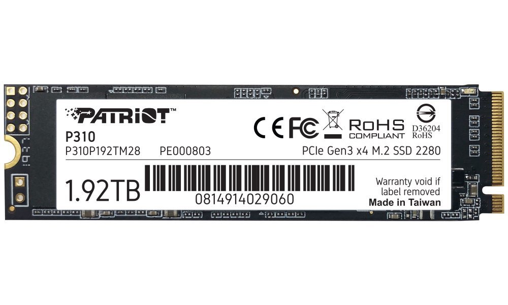 PATRIOT P310 1,92TB SSD / Interní / M.2 PCIe Gen3 x4 NVMe 1.3 / 2280