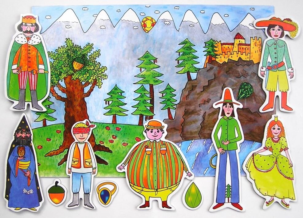 Figurky, rekvizity a scéna k veselé a vtipné pohádce DLOUHÝ, ŠIROKÝ A BYSTROZRAKÝ.