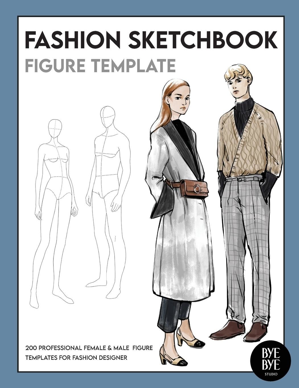 Female & Male Fashion Sketchbook Figure Template (anglicky)