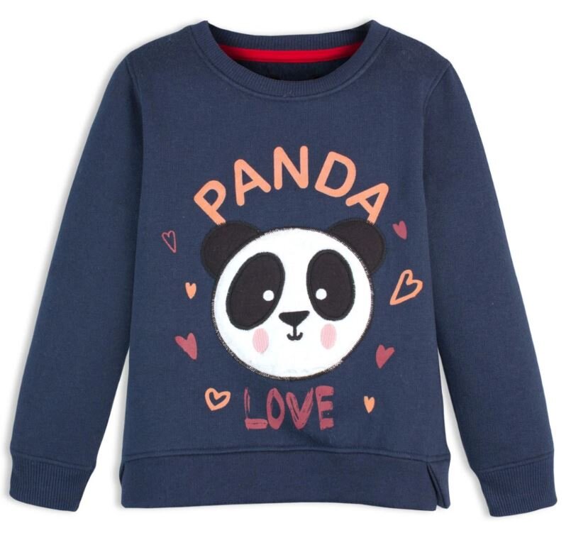 Dívčí mikina přes hlavu s luxusním našívaným motivem ve tvaru hlavičky roztomilé pandy. Mikina se pyšní vysokým podílem bio bavlny a krásným zpracováním. Je vhodná pro chladnější období, z rubové strany má příjemný hřejivý chloupek. Motiv okaté pandy je lehounce přizdoben třpytkami. Materiál:...