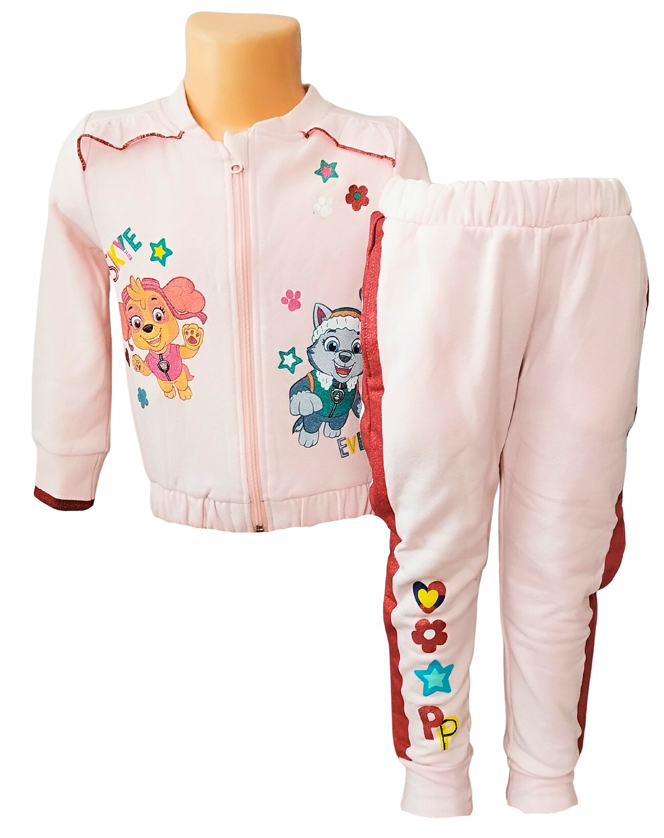 Dívčí tepláková souprava TLAPKOVÁ PATROLA s metalickými lampasy, růžová, velikost: 98