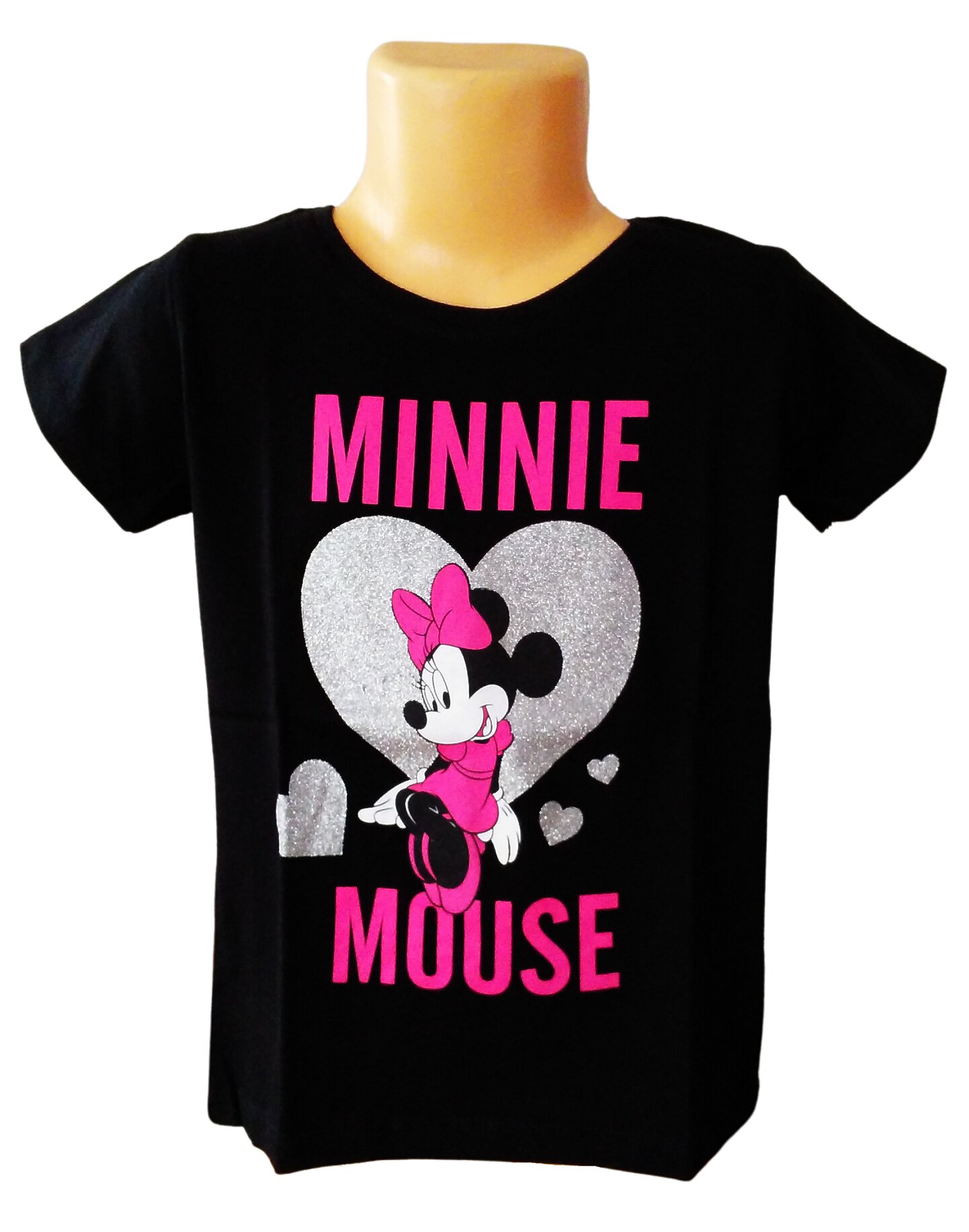 Tričko MINNIE stříbrné srdce krátký rukáv černé, velikost: 116