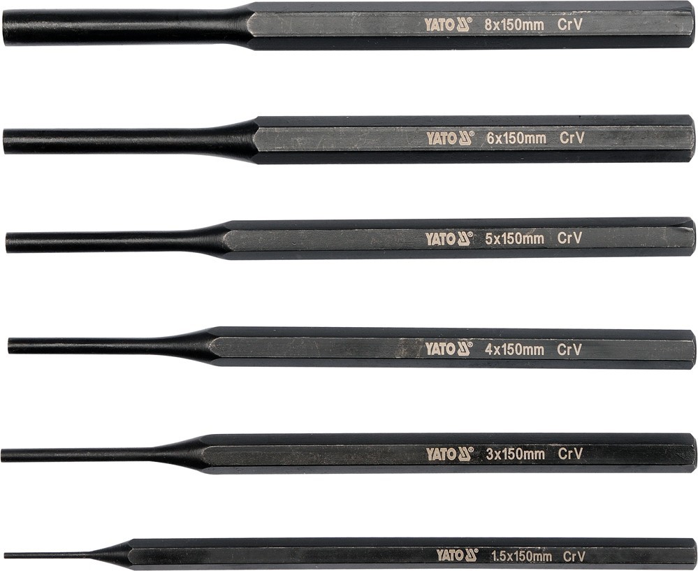 Sada obsahuje 6ks vyražečů s rozměry 1,5; 3; 4; 5; 6; 8 mm s délkou 150 mm.