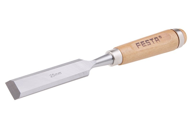 Dláto CrV 25mm/280 mm s ergonomickou rukojetí z bukového dřeva, úderová plocha s kovovým kroužkem, která zvyšuje její pevnost. Čepel je kovaná z CrV oceli tvrzená po celé délce.