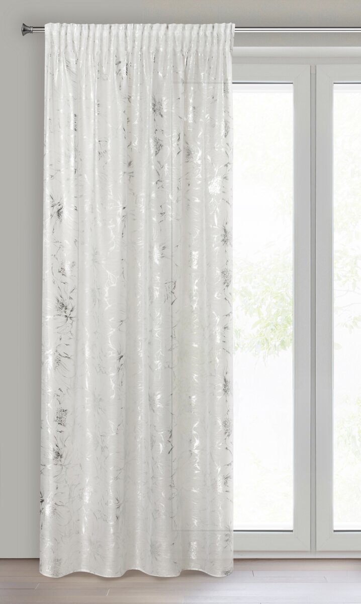 Dekorační vzorovaná záclona s řasící páskou FREEZA bílá/stříbrná 140x300 cm (cena za 1 kus) MyBestHome