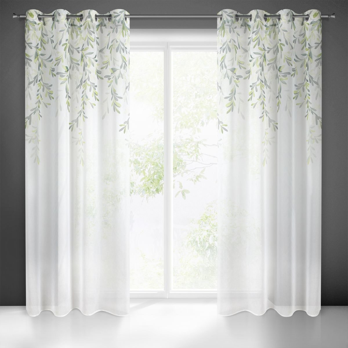 Dekorační vzorovaná záclona s kroužky FRIDA II. bílá/zelená 140x250 cm (cena za 1 kus) MyBestHome