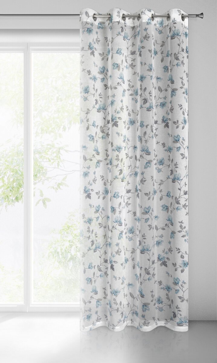 Dekorační vzorovaná záclona s kroužky JANE bílá/modrá 140x250 cm (cena za 1 kus) MyBestHome