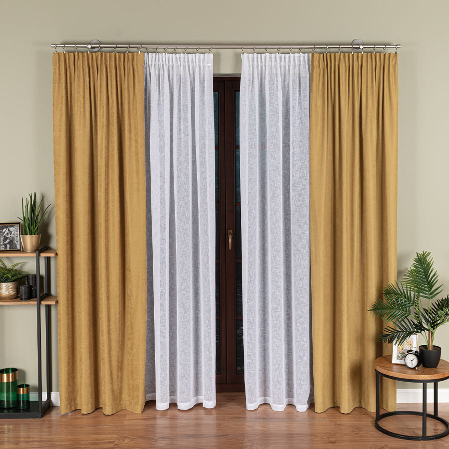 Kvalitní dlouhá hotová dekorační záclona se super režným vzhledem v trendovém provedení do ložnice nebo obývacího pokoje v rozměru 140x250 cm. Záclona má řasící pásku na zavěšení na háčky nebo na žabky, má zadní tunýlek pro tyčovou gárnyž. Záclona se hodí k modernímu i klasickému interiéru. 1 kus v balení.