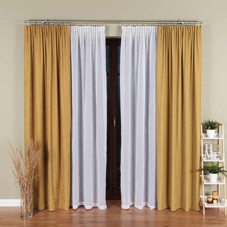 Kvalitní dlouhá hotová dekorační záclona s režným vzhledem v trendovém provedení do ložnice nebo obývacího pokoje v rozměru 140x250 cm. Záclona má řasící pásku na zavěšení na háčky nebo na žabky, má zadní tunýlek pro tyčovou gárnyž. Záclona se hodí k modernímu i klasickému interiéru. 1 kus v balení.