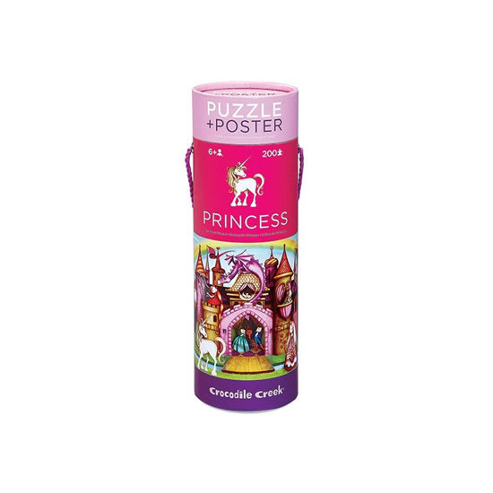 Puzzle s plakátem v kulaté krabici vhodné na přenášení s motivem zámku pro princeznu. 200 dílků, velikost složené puzzle 33x48 cm. Věk 6+ číst celé