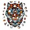 - Barva: mix barev s dominantním akvarelovým motivem tygra