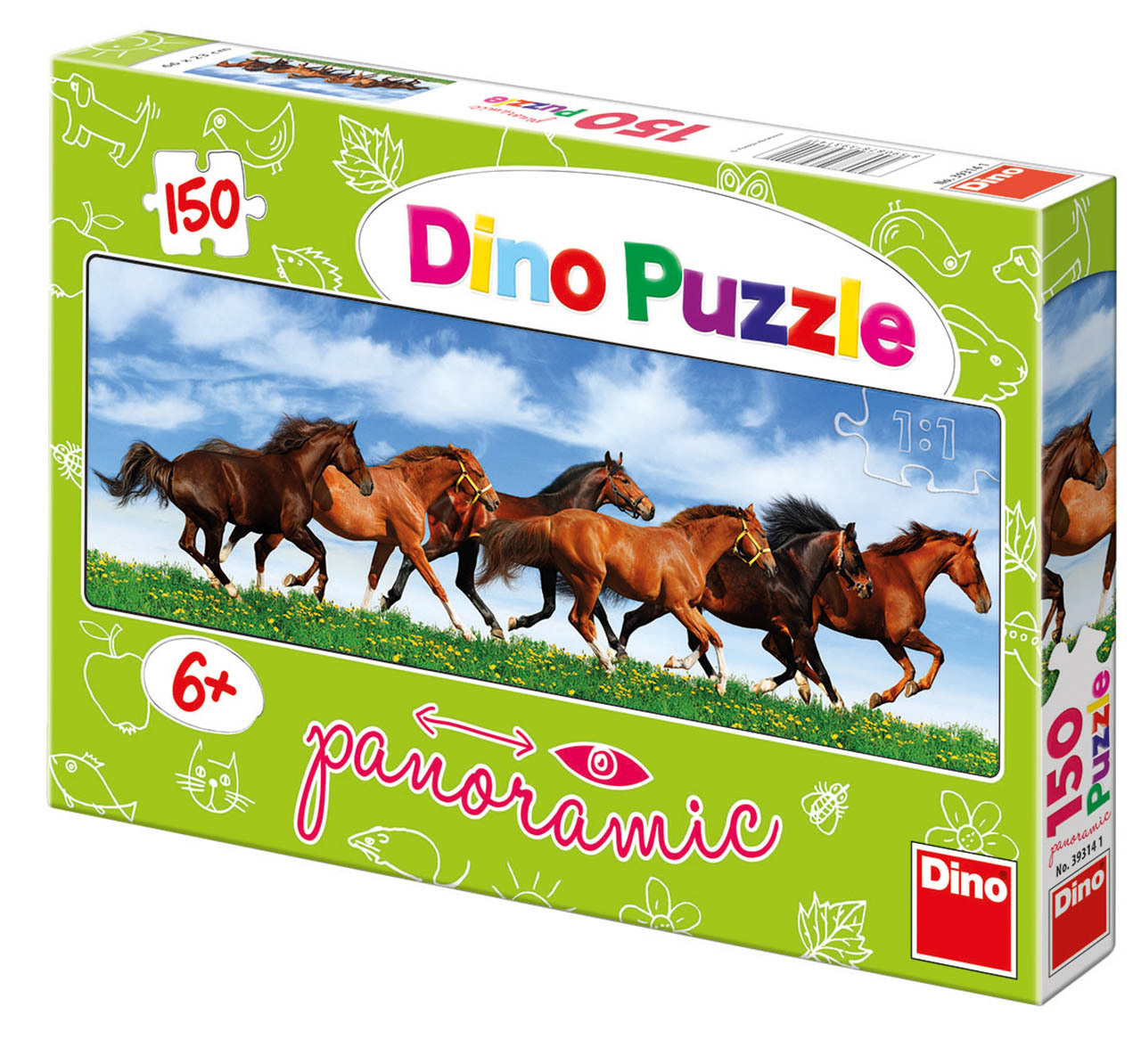 Puzzle s motivem koní 150 dílků. Rozměry složeného obrázku jsou 47x33cm. Vhodné pro děti od 6 let.