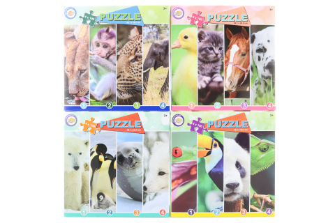 Puzzle 4v1 se zvířátky. Balení obsahuje 4 obrázky zvířat. Každý obrázek má 100 dílků. Rozměry cca 38,1 x 28,5 cm. Rozměry balení cca 20 x 20 x 7,5 cm. Věk 3+ číst celé