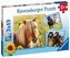 Dětské puzzle s motivem koní. V balení jsou 3 obrázky každý s jiným motivem po 49 dílcích. Velikost složeného obrázku 21x21 cm. Baleno v krabici. Doporučený věk 5+ číst celé