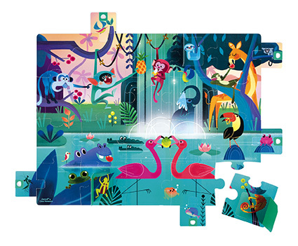 Dětské puzzle Janod s motivem Džungle obsahuje 20 dílků a jsou vhodné pro děti od 2 - 4 let. Tyto puzzle ukrývají milé překvapení. Na puzzle se nacházejí až 3 okénka, které dětem odhalí nový obrázek a také po stranách najdou 5 vytahovacích dílků, které jim také odhalí něco nového. Puzzle rozvíjejí logické myšlení, pozornost a paměť dětí. Pomocí puzzle se učí rozpoznávat barvy, tvary, objekty, rozvíjí se motorika rukou, děti se učí vnímat vztah mezi částmi a celkem. Rozměr: 65 x 50 cm