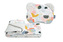 W skład kompletu do wózka wchodzi poduszka i kocyk z warstwą wypełnienia z włókniny silikonowej. Komplet idealnie sprawdza się w wózku, łóżeczku czy jako miękka mata dla maluszka. Sama poduszka może służyć jako przytulanka. Zestaw został wykonany z bawełny 100% z unikalnym wzorem.