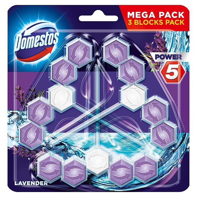 Tuhý WC blok Domestos Power 5 poskytuje Vaší toaletě komplexní péči. Zabraňuje tvorbě vodního kamene, vytváří bohatou svěží pěnu, zaručuje čistý povrch toaletní mísy s viditelným leskem a v neposlední řadě zanechává hygienickou čistotu a dlouhotrvající svěží vůni při každém spláchnutí.
