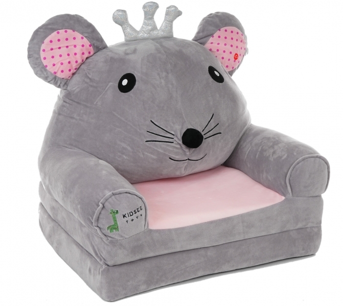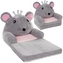 Baby Nellys Plyšové křesílko rozkládací 3v1 - Myška, šedá/růžová