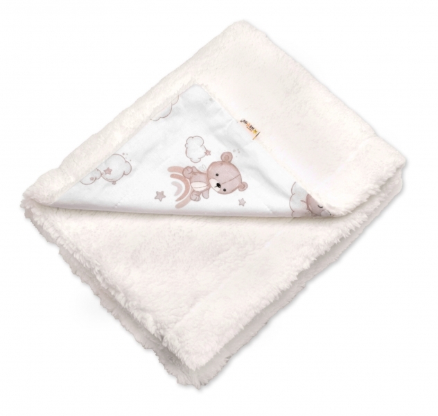 Dětská luxusní oboustranná deka beráenk 90x75 cm, Malý medvídek, bílá, smetanová