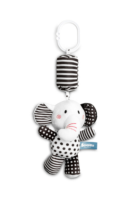 BLACK&WHITE ZAWIESZKA DO WÓZKA SŁOŃ je více než jen plyšová hračka. Díky svému kontrastnímu černobílému designu účinně stimuluje zrak vašich nejmenších, zatímco příjemný zvonek a šustící uši podněcují sluch a hmat. S univerzálním držákem ji snadno připevníte na kočárek nebo kdekoliv na cestách, což z ní činí perfektního společníka na procházky i doma.
