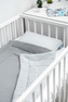 Komplet do łóżeczka to połączenie najwyższej jakości muślinu z jednej strony oraz przędzy bawełnianej z drugiej. Dzięki takiemu połączeniu powstał elegancki zestaw, który łączy ze sobą klasę, jakość i praktyczność. Komplet sprawdzi się zarówno w ciepłe letnie dni jak i w trakcie chłodniejszej zimy. Składa się z dwustronnej płaskiej poduszki oraz kołderki z antyalergicznym wypełnieniem. Wymiary zostały dobrane tak, by idealnie sprawdzić się w łóżeczku, gondoli czy kołysce, a nawet zostać „ulubionym kocykiem”, który można wykorzystać w wózku spacerowym. Dzięki skandynawskiemu stylowi zestaw pasuje do każdego dziecięcego pokoiku. Tkaniny z których wykonany został komplet oraz wypełnienie posiadają certyfikat OEKO-TEX 100.