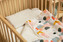Komplet do łóżeczka jest wykonany z jednej strony z wysokiej jakości kolorowej bawełny, a z drugiej przyjemnego w dotyku velvetu. Składa się z płaskiej poduszki oraz kołderki z antyalergicznym wypełnieniem. Milutka tkanina przyjemnie otuli każdego maluszka.