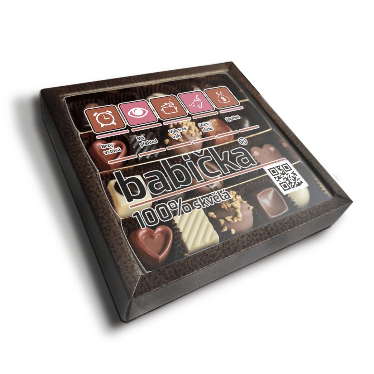 Krabička s pralinkami a lanýži s originálním motivem.Pralinky jsou ideálním dárkem pro milovníky luxusu a požitků. Tento zážitek z mlsání je navýšen o originální potisk, který vystihuje osobní věnování. Pralinky v balení jsou seskládané z mléčné, hořké a bílé čokolády s různými příchutěmi. Pralinky a jsou vyrobeny poctivou českou výrobou z té nejčistší čokolády bez lepku a palmového oleje. Darujte sladkou radost :-)3 varianty: 10, 20 a 28 kusů