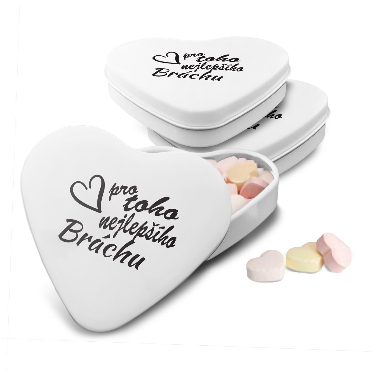 Bonbónky v srdíčkové krabičce s originálním motivemBonbónky jsou malým dárečkem pro potěšení a je vhodné darovat je jako doplněk s jiným dárkem z našeho e-shopu nebo v dárkové krabičce s ostatními produkty.Udělejte radost malým dárkem do kapsy, sladkými bonbóny v kovové krabičce ve tvaru srdce. Každého mlsouna potěší "Lipo" bonbónky v krabičce, kterou může dále používat a poslouží mu jako milá vzpomínka. V krabičce jsou namixované různé příchutě bonbónků ve tvaru srdce. Originální potisk dodá bonbónkům nádech výjimečnosti.Rozměr: 70 x 65 x 15 mmHmotnost: 40g