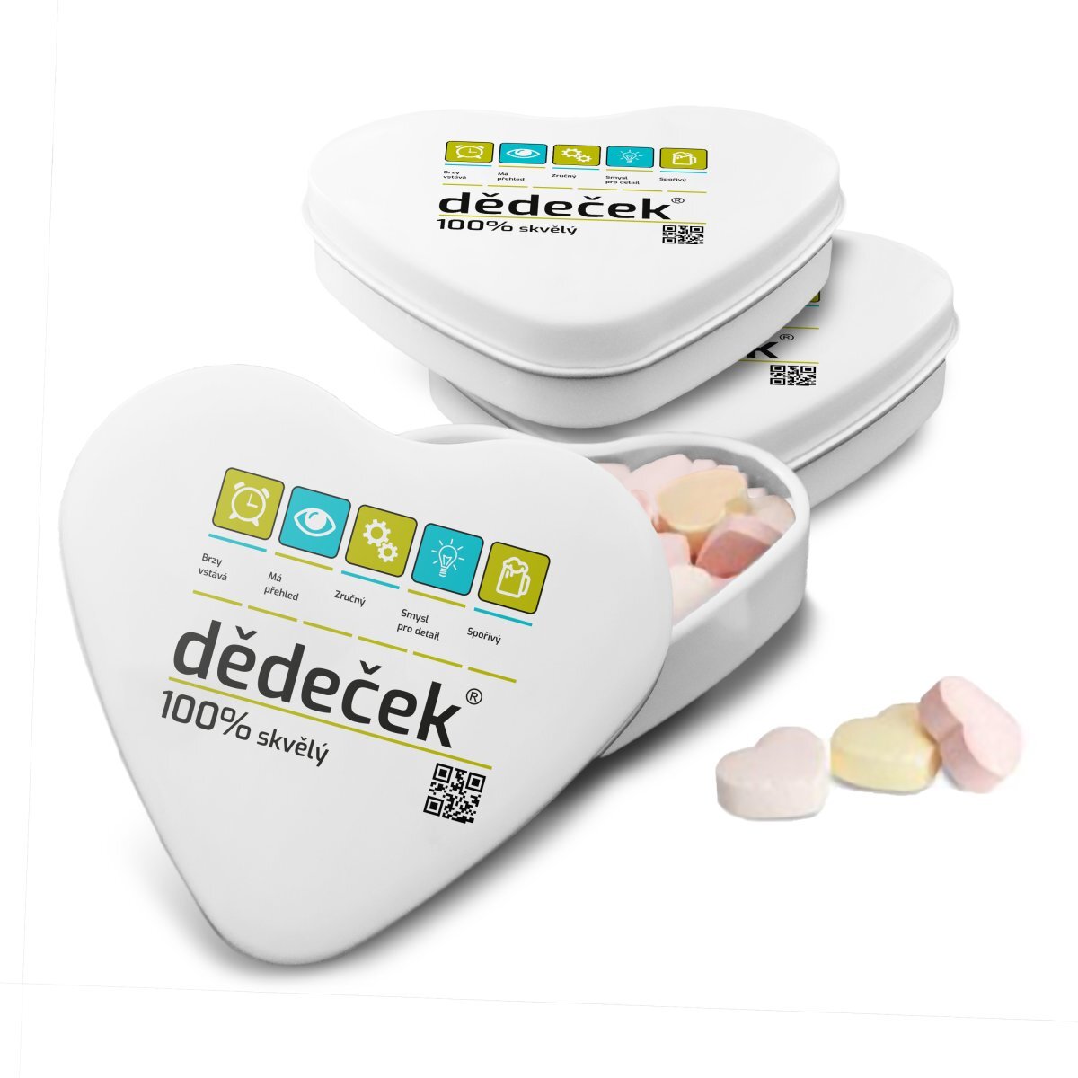 Bonbónky v srdíčkové krabičce s originálním motivemBonbónky jsou malým dárečkem pro potěšení a je vhodné darovat je jako doplněk s jiným dárkem z našeho e-shopu nebo v dárkové krabičce s ostatními produkty.Udělejte radost malým dárkem do kapsy, sladkými bonbóny v kovové krabičce ve tvaru srdce. Každého mlsouna potěší "Lipo" bonbónky v krabičce, kterou může dále používat a poslouží mu jako milá vzpomínka. V krabičce jsou namixované různé příchutě bonbónků ve tvaru srdce. Originální potisk dodá bonbónkům nádech výjimečnosti.Rozměr: 70 x 65 x 15 mmHmotnost: 40g