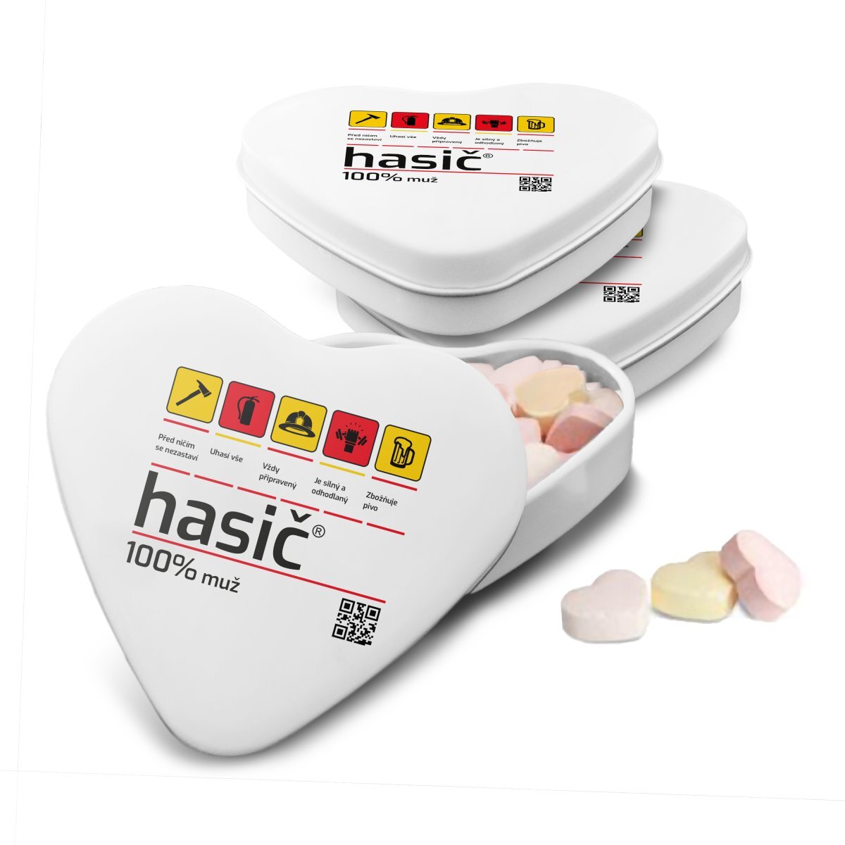 Bonbónky v srdíčkové krabičce s originálním motivemBonbónky jsou malým dárečkem pro potěšení a je vhodné darovat je jako doplněk s jiným dárkem z našeho e-shopu nebo v dárkové krabičce s ostatními produkty.Udělejte radost malým dárkem do kapsy, sladkými bonbóny v kovové krabičce ve tvaru srdce. Každého mlsouna potěší "Lipo" bonbónky v krabičce, kterou může dále používat a poslouží mu jako milá vzpomínka. V krabičce jsou namixované různé příchutě bonbónků ve tvaru srdce. Originální potisk dodá bonbónkům nádech výjimečnosti.Rozměr: 70 x 65 x 15 mmHmotnost: 40g